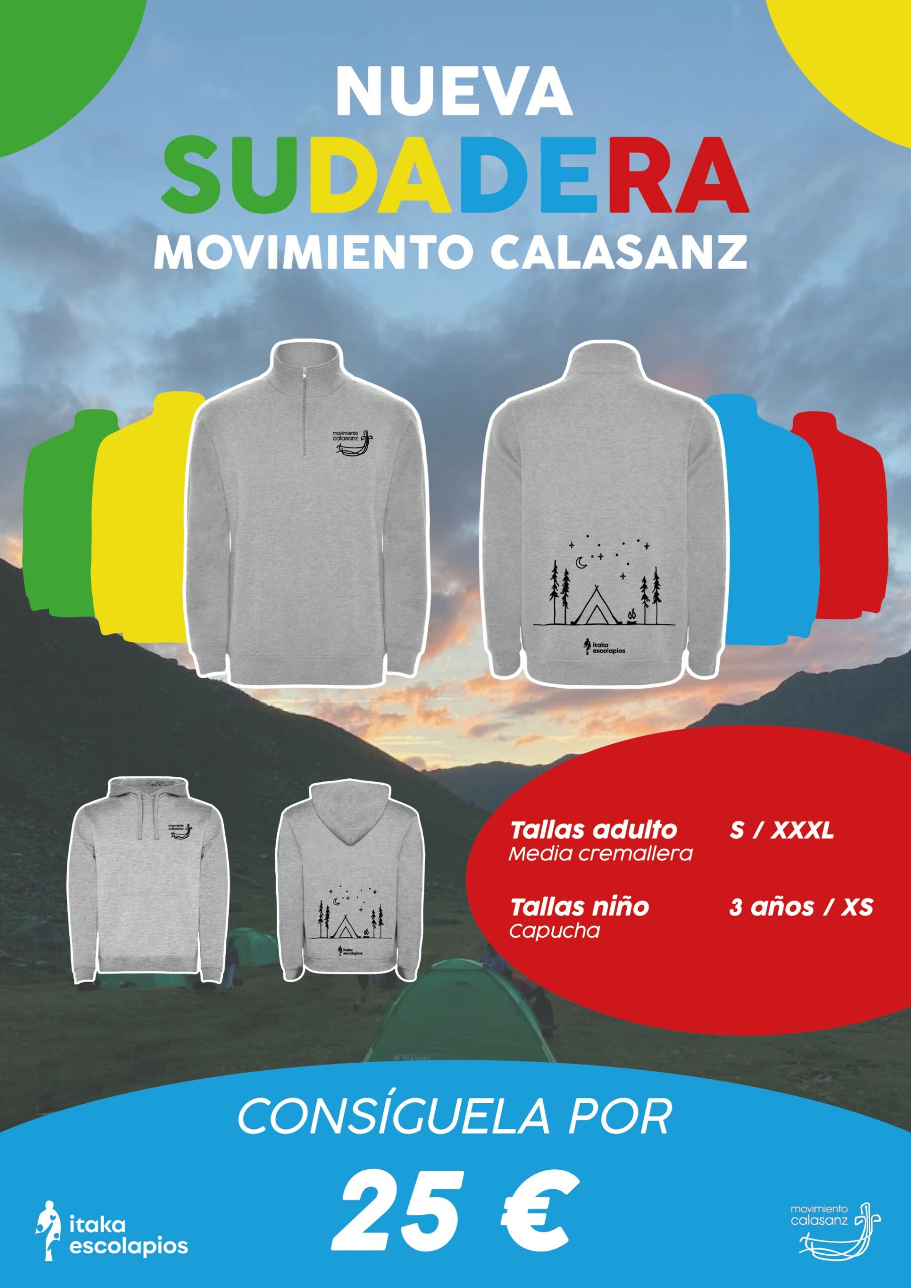 Nueva sudadera de Movimiento Calasanz, perfecta para llevar a nuestras actividades o el día a día en el colegio. Con capucha para las tallas pequeñas y en formato polo con cremallera para los más mayores.
